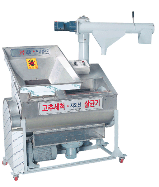 고추는 재배시에 먼지가 많이 묻고 건조 과정에서 불순물이 유입될 수 있어 우리의 건강을 해칠수 있는 많은 요소가 있기 때문에 꼭 닦아 드셔야 합니다. 농작물 중 농약을 가장 많이 사용하는 것이 고추지만 또한 씻서나 닦아 먹지않는 것이 고추입니다. 지금은 웰빙 시대… 깨끗하고 위생적으로 고추를 빻아 주신다면 소비자는 먼곳에서도 찾아옵니다. 고추 세척기 한대로 세척, 자외선 살균, 씨앗분리 초벌후 이송까지 모두 해결할 수 있습니다.